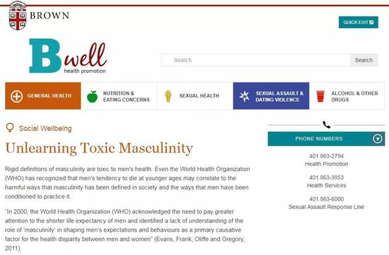 据福克斯新闻报道,美国布朗大学从今年新学期开设一门新课叫作“忘掉有害的男子气概”(unlearning toxic masculinity)。