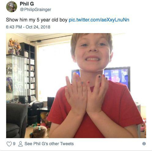 据《卫报》报道,一个美国爸爸讲述了,自己5岁的儿子因为涂着漂亮的指甲油去幼儿园而受到了欺负,这个话题引发了网友大讨论。