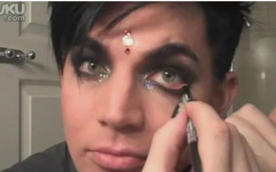 美国男歌手亚当•兰伯特 (Adam Lambert)就经常会在舞台上贴上闪闪发亮的眼影,并且还多次拍摄美妆视频。