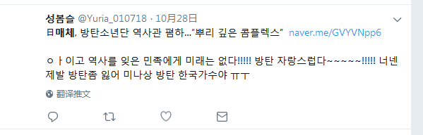 网友성봄슬:忘记历史的民族没有未来!!!!!为防弹自豪~~~~!!!!!