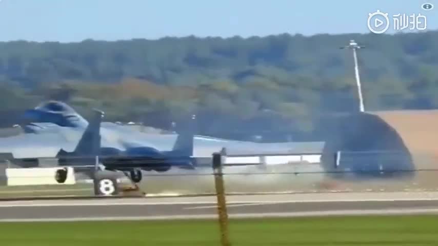 视频:F15战机紧急降落 尾钩与地面擦撞火花四溅