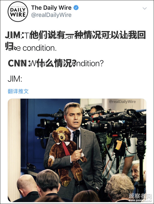 “抱着‘特朗普熊熊’来采访,我就同意归还你被没收的白宫通行证。”
