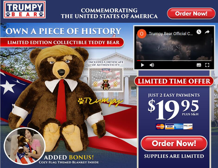 但据Snopes网站报道,“特朗普熊熊”的确是一个真实存在并且可购买的玩偶,由一家得克萨斯州的公司销售。