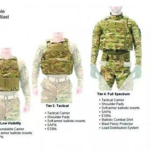 现在投入使用的解决方案是什么?目前担任美国陆军士兵保护装备产品经理的参战老兵怀特黑德说,这是一种由精心构思的组件组成的士兵保护系统,穿戴者可以对组件进行组合搭配以符合任务的要求。士兵们可以将这种新系统拆解到只剩下一件2.8磅重的背心,藏在军装甚至是便衣里面以抵御手枪子弹。对于那些希望保持低调但可能在所谓的“绿袭蓝”事件(“绿袭蓝”事件指的是阿富汗军队或安全部门中所谓的友好人士调转枪头袭击北约或美国军队和顾问人员)中被自己从前的学生射杀的人来说,这是理想的选择。最先获得这套系统的是前往阿富汗的美国陆军安全援助旅。他们也可以增加一层防护用于全面作战,通过硬质防弹板和软质织物(类似凯夫拉)的组合来抵御炸弹爆炸和炮弹碎片,却不必背负像以前的防弹衣那样的重量。