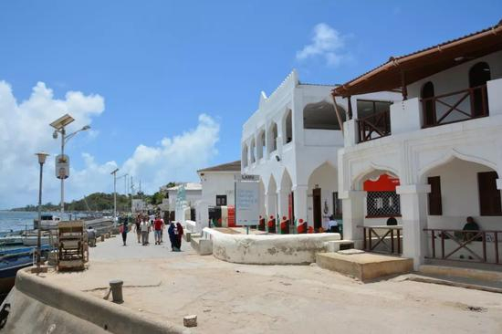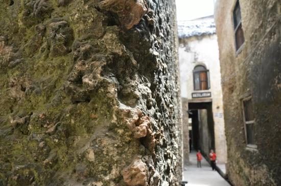 巷道两边高耸的建筑是由古老的珊瑚石墙筑成——这是斯瓦希里建筑风貌的重要特征。