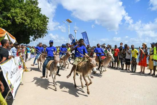 中国有句谚语:“骑驴看唱本——走着瞧。”但在拉穆骑驴比赛中,驴可不是这样慢悠悠的。