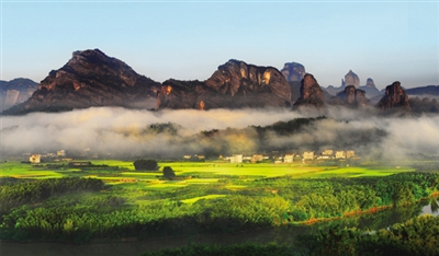 ★世界自然遗产地丹霞山:丹崖碧水、绝壑层峦、云雾缥缈,晨钟暮鼓、竹影婆娑、松涛阵阵。山间民居古树错落、阡陌纵横、炊烟袅袅,山水田园风光优美迷人,自古以来就是岭南宗教名山和风景胜地。