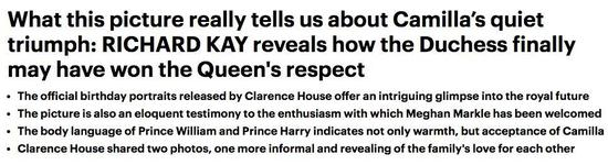 甚至在去年11月,查尔斯70岁生日纪念活动中,从王室披露了的照片来看,有媒体揣测卡米拉算是赢得了女王以及哈里威廉的尊敬。