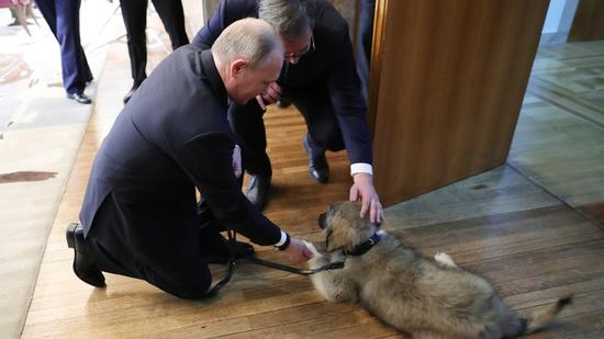 今日俄罗斯称,普京对这只小狗爱不释手,直呼“好可爱”。这只小狗也成为普京自2000年首次出任俄罗斯总统以来,收到的第5只狗。