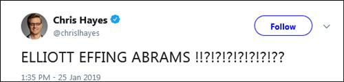 由于这些“黑历史”,不少美国记者和政界人士,甚至那些支持委内瑞拉政权更迭的人,如MSNBC的主持人克里斯·海耶斯,也对这一消息感到震惊,他直呼,“混球埃利奥特·艾布拉姆斯?!”