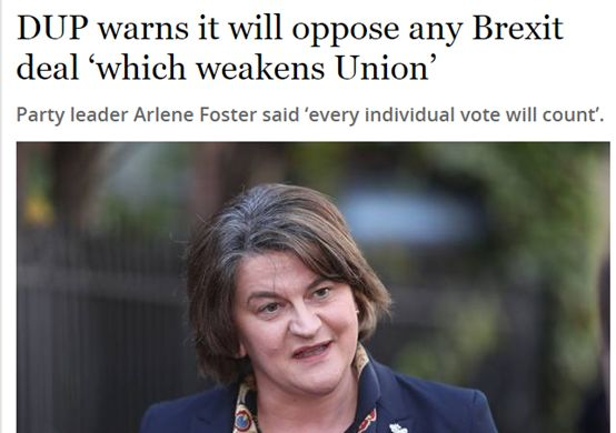 因为如果英国不想北爱尔兰出事,就必定要让北爱尔兰以某种方式与爱尔兰所属的欧盟保持海关和市场的统一。但这在北爱尔兰“心向大英”的那群政客看来,等于是在分裂英国的主权;而在执意要完成脱欧的英国保守派政客看来,这也根本不是真正的脱欧……