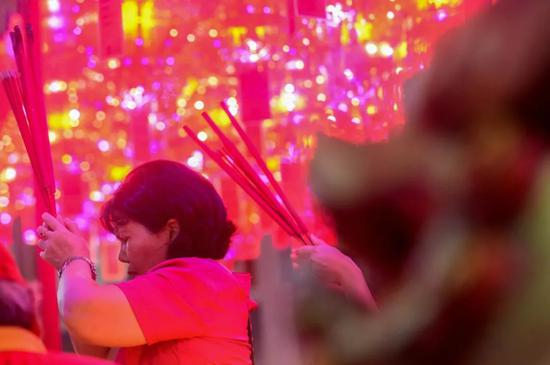 春节期间,除了清扫房屋、购置年货、贴挂春联灯笼和举办由本地百姓共同参加的舞龙舞狮活动外,印尼华人不论年龄大小,还一定前往寺庙烧香祈福,举办捐赠布施活动,实现春节“众乐乐”的特别意义。