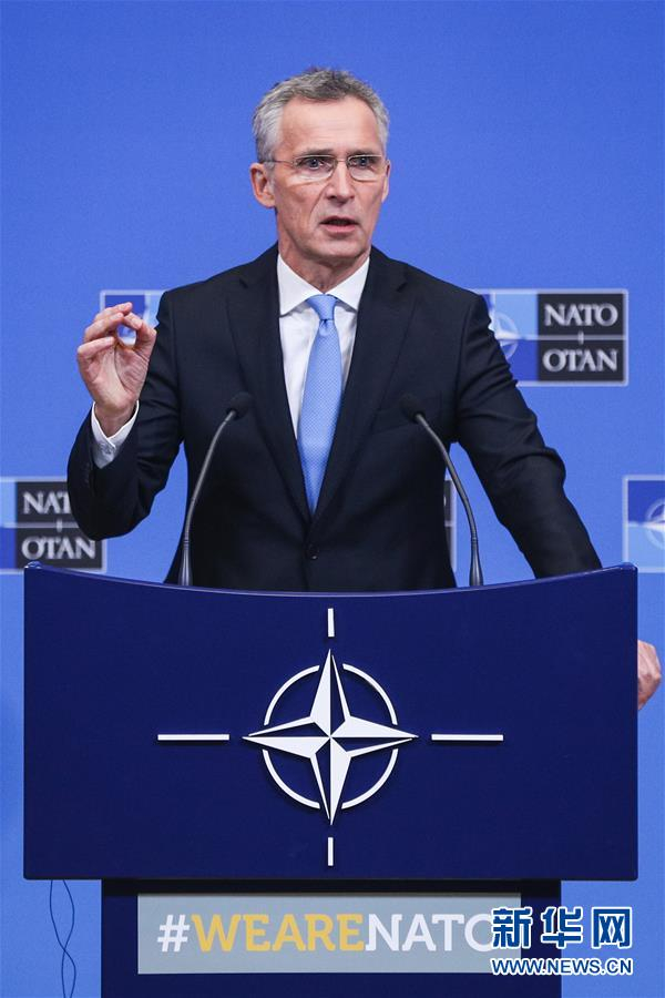 2月14日,在比利时首都布鲁塞尔的北约总部,北约秘书长斯托尔滕贝格在北约国防部长会议后出席新闻发布会。 北约国防部长会议当天在位于比利时首都布鲁塞尔的北约总部结束。 新华社记者郑焕松摄