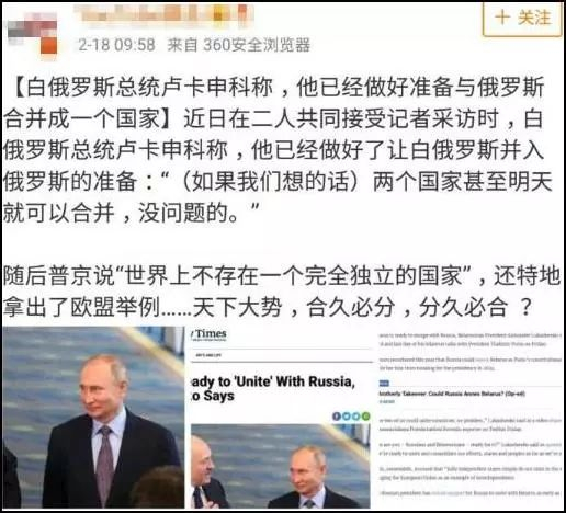 甚至有人转述,白俄罗斯总统卢卡申科表示,“明天就可以并入俄罗斯,没问题”。