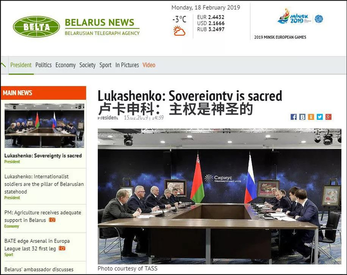 此外,白俄罗斯官媒还专门在报道中突出了卢卡申科关于“主权神圣”的表态: