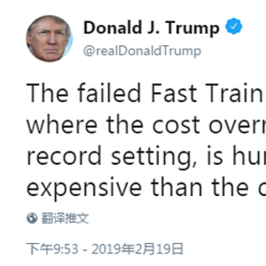 连续几天,特朗普都将目光锁定在美国加州的高铁项目。