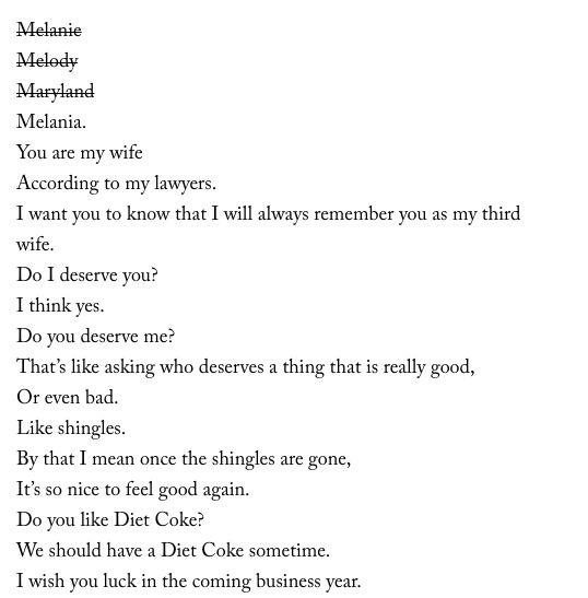 今年情人节,美国杂志《纽约客》也替特朗普给梅拉尼娅写了如下一首诗,有一点讽刺。诗中表达出,特朗普极其良好的自我感觉。