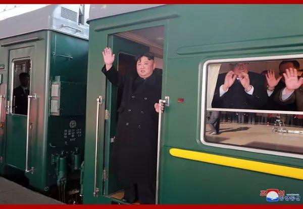 金正恩2月23日17时乘专列从平壤出发,劳动党中央政治局委员金英哲、李洙墉、金平海、吴秀容,外务相李勇浩,人民武力相努光铁,党中央第一副部长金与正,外务省副相崔善姬等陪同前往。从朝鲜官方媒体发布的照片可见,金正恩站在专列的车门位置向月台上的人挥手致意,同行人员也在车厢内向外挥手。