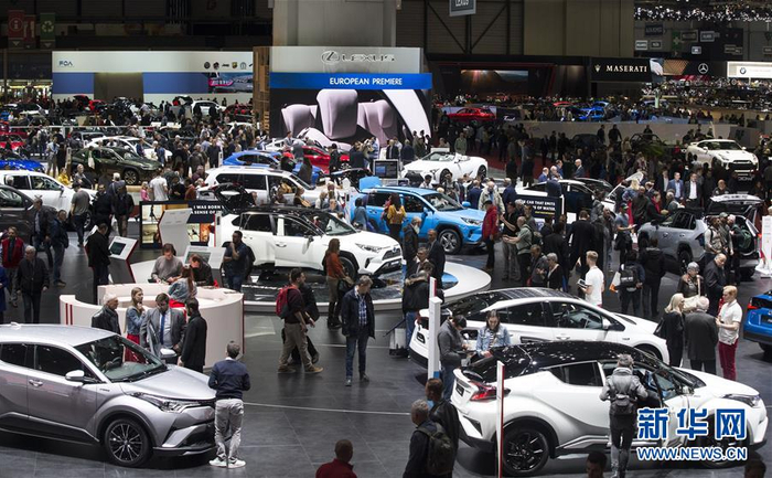 3月7日,在瑞士日内瓦,人们在日内瓦国际车展上参观。 第89届日内瓦国际车展7日起正式对公众开放。作为每年最早开幕的欧洲车展,日内瓦车展素有汽车行业“风向标”之称,而在今年的展会上,这一“风向标”明确地指向电动化。 新华社记者徐金泉摄
