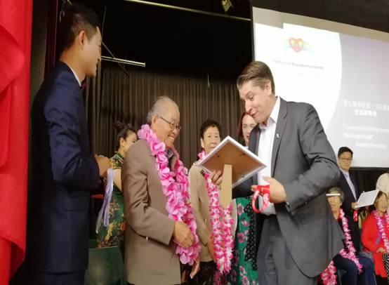 在表彰会上,在新西兰中国风电声乐队演奏美妙的乐曲中,大会为每位获奖者佩带上荣誉花环和奖牌,并由与会嘉宾向他们颁发了爱心荣誉奖状,新西兰亚裔家庭服务中心为获奖者赠送了礼物。这时,全場响起热烈的掌声,共同向他们致以热烈的祝贺!