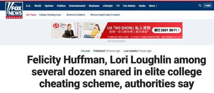 其中最有名的,是《绝望主妇》女演员菲丽西提⋅霍夫曼(Felicity Huffman)和《欢乐满屋》女演员洛莉⋅路格林(Lori Loughlin)