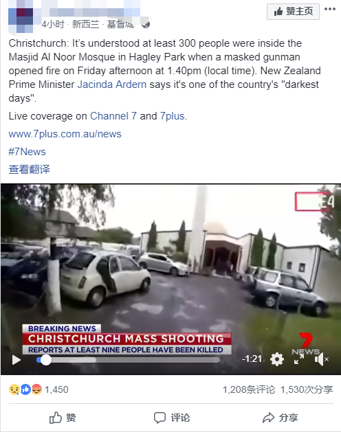 原标题:新西兰屠杀视频在脸书推特传播,网友愤怒:撤下去!