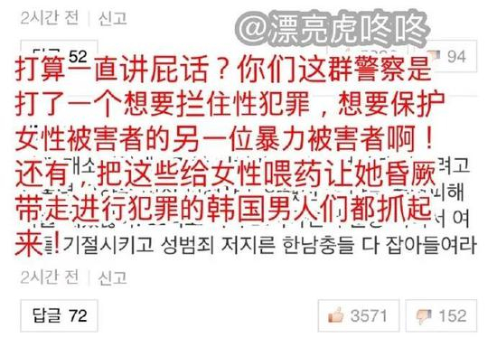 微博博主@漂亮虎咚咚 翻译韩国网友言论。