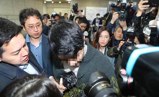 当地时间2019年3月19日,韩国首尔,“胜利事件”持续发酵牵连整个娱乐圈,首尔中央地方法院对涉嫌吸毒和毒品流通的Burning Sun夜店代表人李文浩进行逮捕审查。视觉中国 图