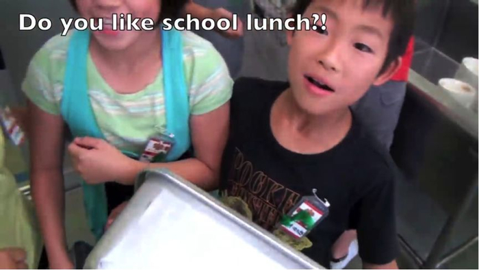 回答是否中意学校午餐时,每位学生都笑着大喊“喜欢”