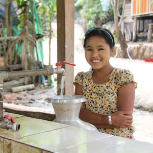 图片:中缅油气管道项目开工以来,马德岛居民终于用上了自来水。图为村民到取水点接水。本报记者孙广勇摄