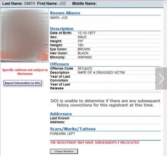 性侵者获释出狱后,必须在居住的当地社区登记报备个人行踪、住址、驾照号码、体貌特征等。