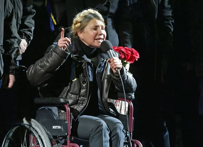 当天晚上,坐着轮椅的季莫申科现身基辅独立广场。她在寒风中对示威者发表演讲,其间数度哽咽。她大呼“英雄永远不死”,呼吁坚守在独立广场上的示威者在没有实现所有目标之前不要离开广场。