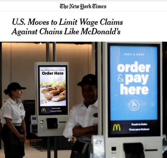 ▲美国采取措施,限制麦当劳等连锁店员工的涨薪诉求 (via NYT)