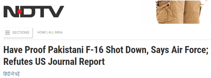 据多家印媒报道,印度空军当天重申,确实在2月27日的空战中击落了一架来自巴基斯坦的F-16战机。不少媒体还将“印度空军驳斥美媒报道”、“印度空军贬损美媒报道”放在了标题里。
