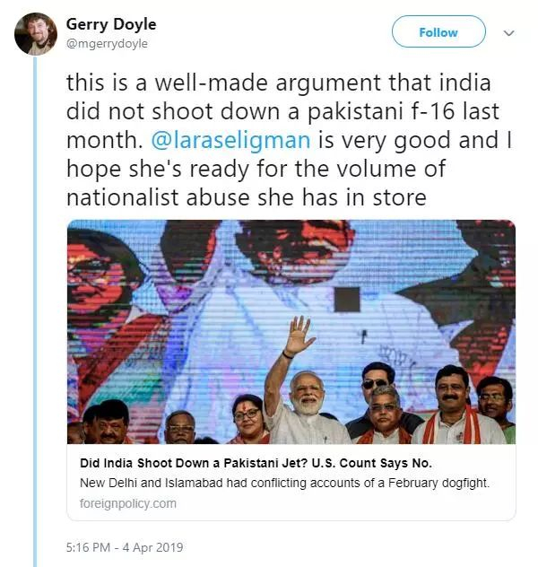 有不少印度网民质疑,美国这次清点没有把巴基斯坦从约旦购入的F-16涵盖在内,所以报道肯定存在漏洞。对此,文章作者Lara Seligman专门发帖回应:算上了。