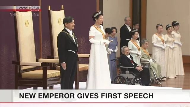 德仁天皇表示,“我承诺我会遵照宪法要求,履行我作为国家和人民团结象征的职责,同时为了人民的幸福、国家的繁荣和世界的和平而努力”。