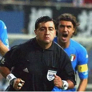 2002年日韩世界杯1/8决赛意大利VS韩国的比赛中,当值主裁判莫雷诺先是送给东道主韩国队一个有争议的点球,随后在下半场时,意大利队的赞布罗塔被韩国队的黄善洪铲伤下场,然而黄善洪并没有受到任何处罚。加时赛中,莫雷诺又以假摔为名红牌罚下意大利主力球员托蒂。此后,意大利球员维埃里妙传反越位插上的托马西,后者轻松晃过韩国门将后将球踢进球门,莫雷诺却判罚托马西的球越位,为无效进球。终场前,韩国队球员安贞焕头球绝杀意大利,进入八强。那场比赛,意大利队全队领到6张黄牌,一张红牌,此外,还被罚了一个点球。