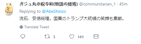 ガジュ丸:不愧是安倍首相。作为国宾的特朗普总统笑得也很好。