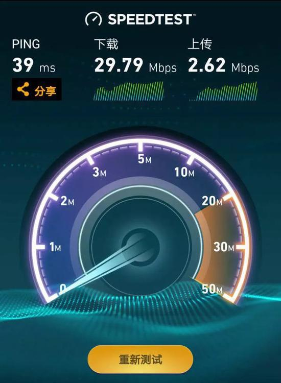 一下车,笔者掏出手机测速,发现网速竟然高达30兆。