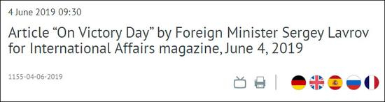 俄罗斯外长拉夫罗夫周二发表关于“二战胜利日”文章 截图:俄罗斯外交部网站