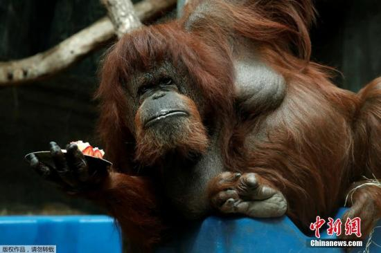 中新网6月18日电 据香港《星岛日报》报道,当地时间16日,一只婆罗洲红毛猩猩奈奈特在法国巴黎一间动物园庆祝50岁生日,在现场它吃草苺蛋糕及水果,显得津津有味。而动物园游客都为它高唱生日快乐,更在它四周放满包装好的生日礼物盒。