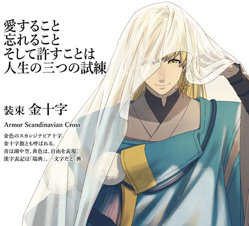 瑞典国旗的背景为蓝色,黄色十字略向左侧。蓝色代表天空、湖水,黄色象征着自由。角色装甲名为“金十字”,与国旗同名;格言为“热爱、忘记、原谅是人生的三大试炼”。