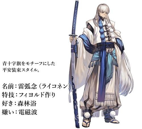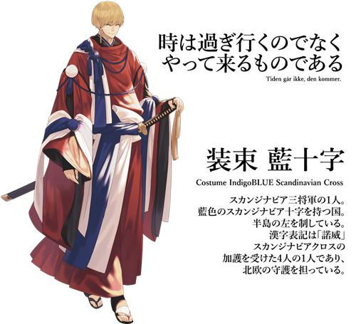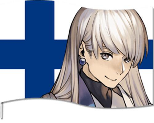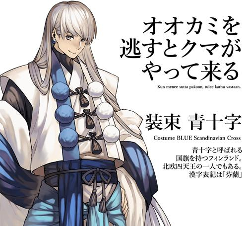 芬兰国旗的背景为白色,蓝色十字略向左侧,被称为“青十字”。汉字记为“芬兰”。角色是以国旗颜色为主色绘制的,身穿日本平安时代装束“青十字”。