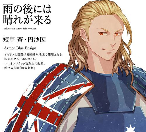 综合了英格兰、苏格兰、北爱尔兰的旗帜,被称为“Union Jack”或“Union Flag”。汉字记为“英”,装甲名“游武恩邪俱”。