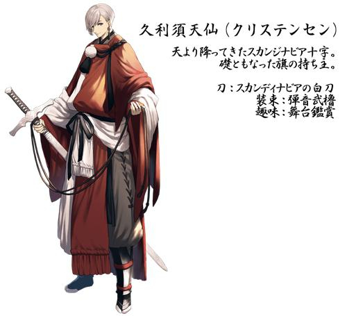 角色名为“久利须天仙”,手持斯堪的纳维亚之白刀,爱好观看舞台表演。