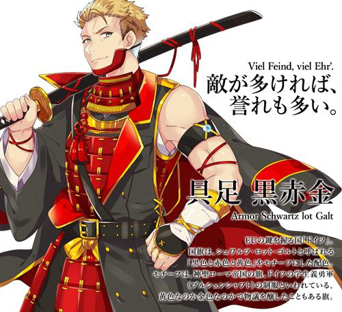 角色由德国国旗的黑、红、黄三色组成,是“掌握着欧盟之匙”的国家。装甲名为“黑赤金”。