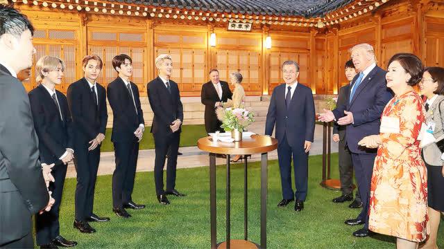 G20峰会结束后,特朗普29日马不停蹄地前往韩国进行访问,这是他执政以来第二次对韩国进行访问。韩联社称,为了表示欢迎,韩国总统文在寅当晚在青瓦台设宴招待特朗普一行,还请来了韩国知名男团EXO。