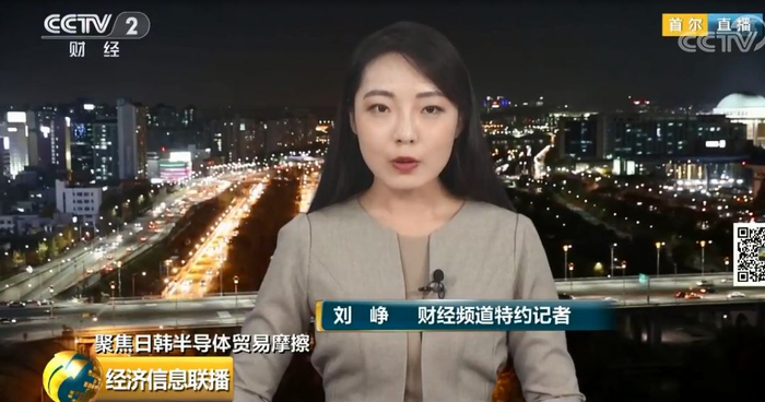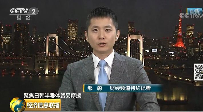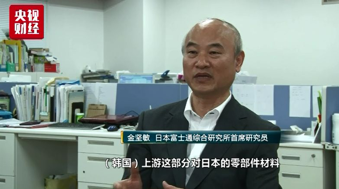 日本富士通综合研究所首席研究员 金坚敏:韩国上游这部分对日本的零部件材料依赖比较多,日本政府就采取收紧半导体材料这些措施来影响韩国产业,通过产业再来影响韩国的外交政策。