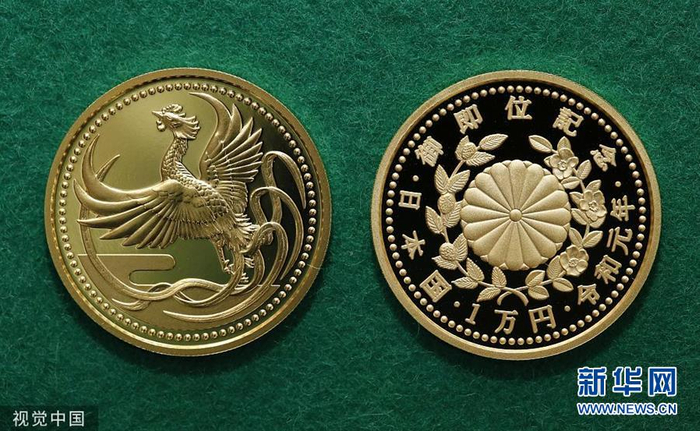 当地时间7月11日,日本大阪,为纪念德仁天皇登基而推出的1万日元金币。“令和元年”硬币沿用了以往的外观设计。(图片来源:视觉中国)