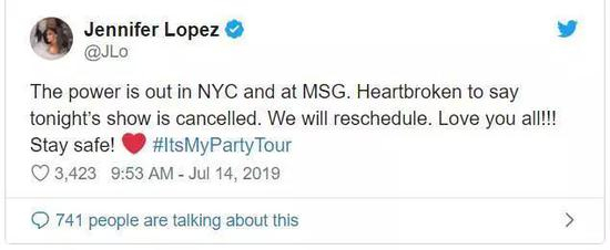 随后,詹妮弗·洛佩兹在Twitter上发布了一段视频,向粉丝道歉,并表示演唱会将另择期举办。她说:“我们刚刚开始演出,他们要求每个人都缓慢而平静地撤离,这是我们必须做的事情。”